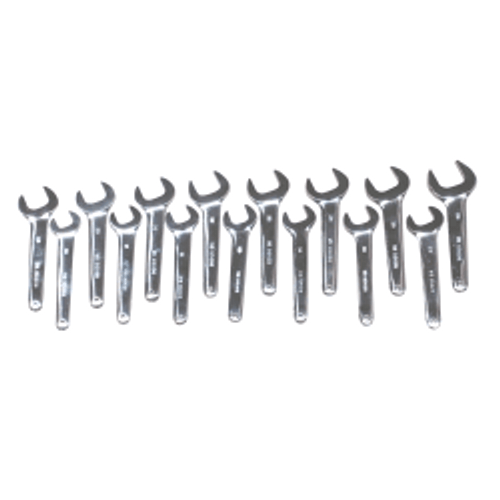 METRIC SERVICE WRENCH SET. SHIPS IN A RED BAG THAT CAN BE ROLLED AND TIED. THERE ARE 15 WRENCHES IN THE SET AND A RANGE FROM 20MM TO 36MM.